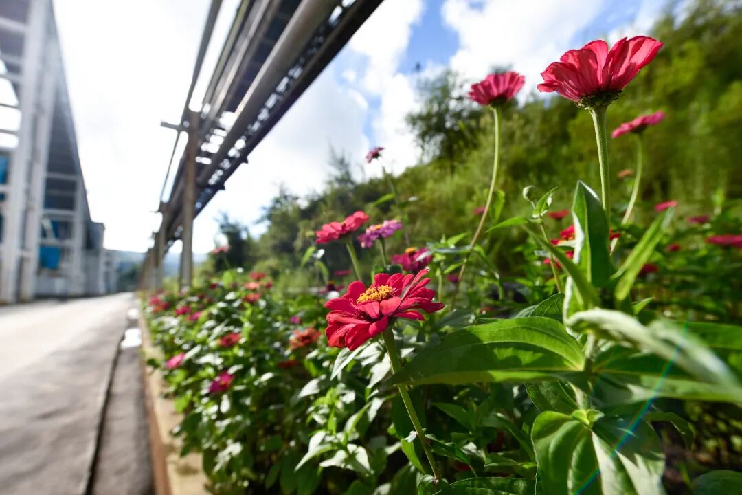 煤棚依舊是那個(gè)煤棚,黑黢黢的煤堆堆得整齊,傳送帶運(yùn)轉(zhuǎn)的聲響依舊是車間的主旋律;混凝土溝也還是那條溝,靜靜流淌著雨水。只是多了這一排百目菊,便仿佛添了些生氣?;ㄩ_(kāi)時(shí)節(jié),燦爛一片,映著黑黢黢的煤堆,倒也別致。